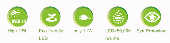 - Ο λαμπτήρας LED καταναλώνει μόλις 11 Watt, καθιστώντας τον 60% (!) οικονομικότερο από μια λάμπα φθορισμού με ίδια φωτεινότητα (περί τα 40W). Επιπλέον, έχει διάρκεια ζωής άνω των 50.000 ωρών, δηλαδή πάνω από 30 χρόνια!