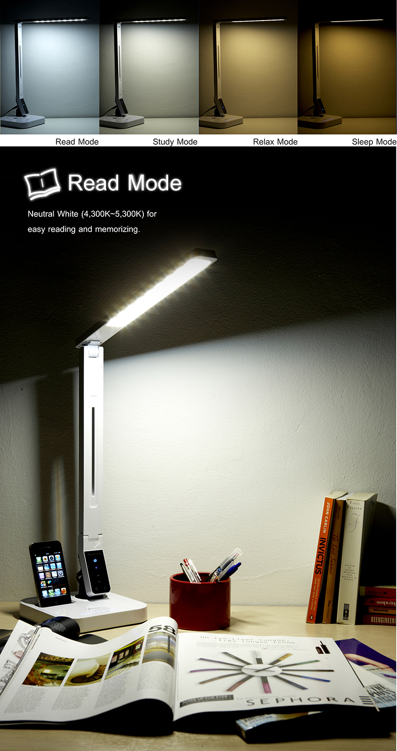 - Η λάμπα τύπου LED είναι τόσο εξελιγμένης τεχνολογίας, που είναι δυνατόν να μεταβάλλεται η «θερμοκρασία» του φωτός που παράγει, ανάλογα με τις ανάγκες του χρήστη. Το φωτιστικό μπορεί λοιπόν να μεταβάλει το φως τους, από το «ψυχρό λευκό» για τις ρυθμίσεις Μελέτης ή Διαβάσματος, έως το «θερμό λευκό» για τις ρυθμίσεις Relax και Ύπνου. Η απόδοση δε του χρώματος υπερβαίνει το 90% της κλίμακας CRI, δηλαδή τα αντικείμενα θα φωτίζονται με πιστότητα ανάλογη του πραγματικού φως ημέρας.